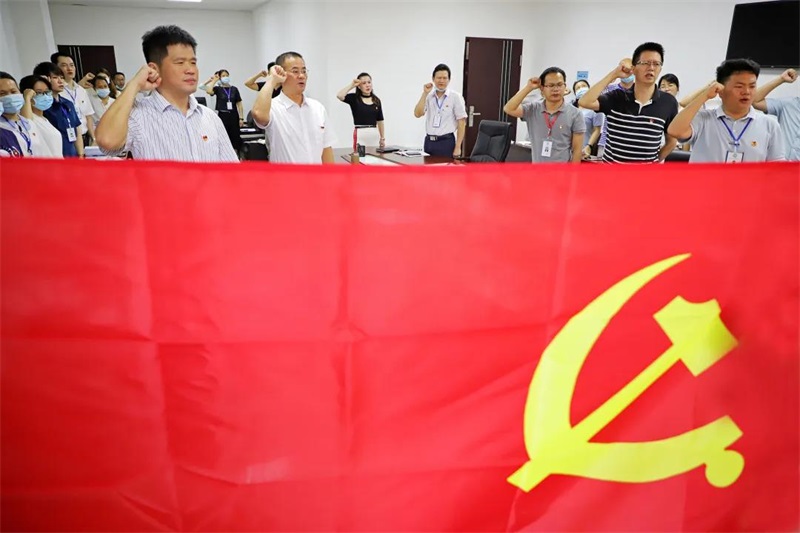 会议首先由院长冯兵领誓,重温了入党誓词。