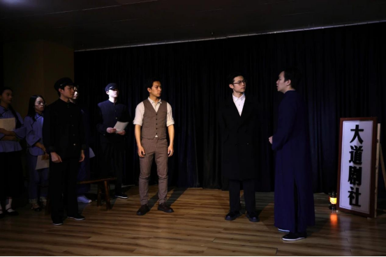 随后,教职工们抵达体验馆的工运剧场,观赏了一场旨在进行爱国主义思政教育的情景剧目。这部名为《前进!进!》的剧目,围绕田汉、聂耳等文艺先驱创作《义勇军进行曲》的历程展开,生动再现了文艺工作者如何以笔杆为武器、以歌声为利剑,投身救亡图存的壮丽篇章。