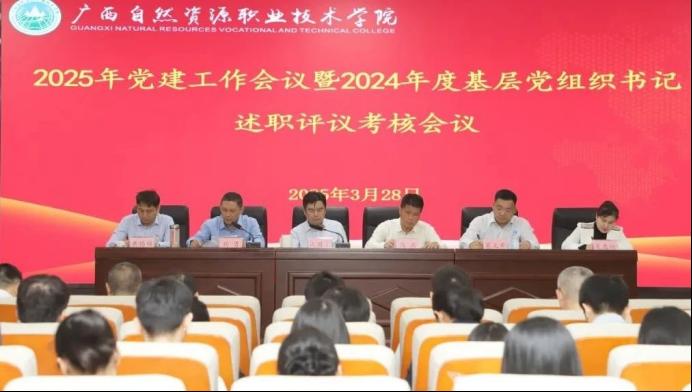 2025年3月28日上午,学院召开2025年党建工作会议暨2024年度基层党组织书记述职评议考核会。会议传达全国、全区高校党的建设工作会议精神和全区自然资源系统2025年党建工作会议精神,开展2024年度基层党组织书记述职评议,部署了学院2025年的党建工作。
