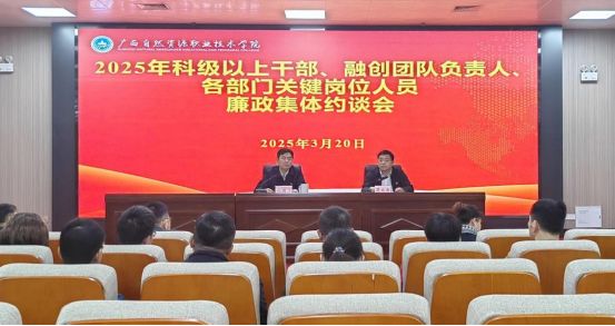 为进一步贯彻落实新时代党的建设总要求,推动全面从严治党向纵深推进,2025年3月20日,广西自然资源职业技术学院在图书馆一楼多功能报告厅召开2025年党风廉政建设工作会议。