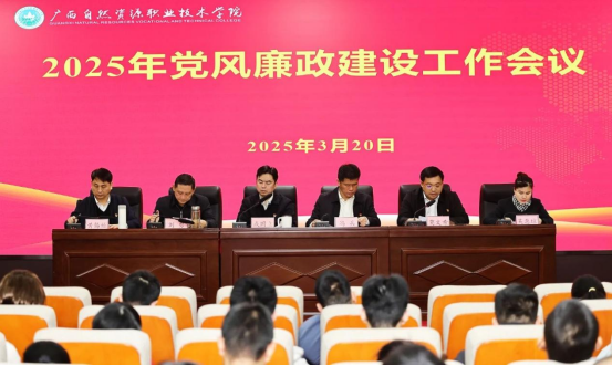 为进一步贯彻落实新时代党的建设总要求,推动全面从严治党向纵深推进,2025年3月20日,广西自然资源职业技术学院在图书馆一楼多功能报告厅召开2025年党风廉政建设工作会议。